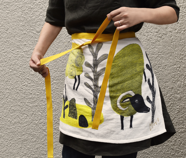 また、3mほどの紐を縫い付けてエプロンに。