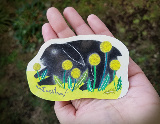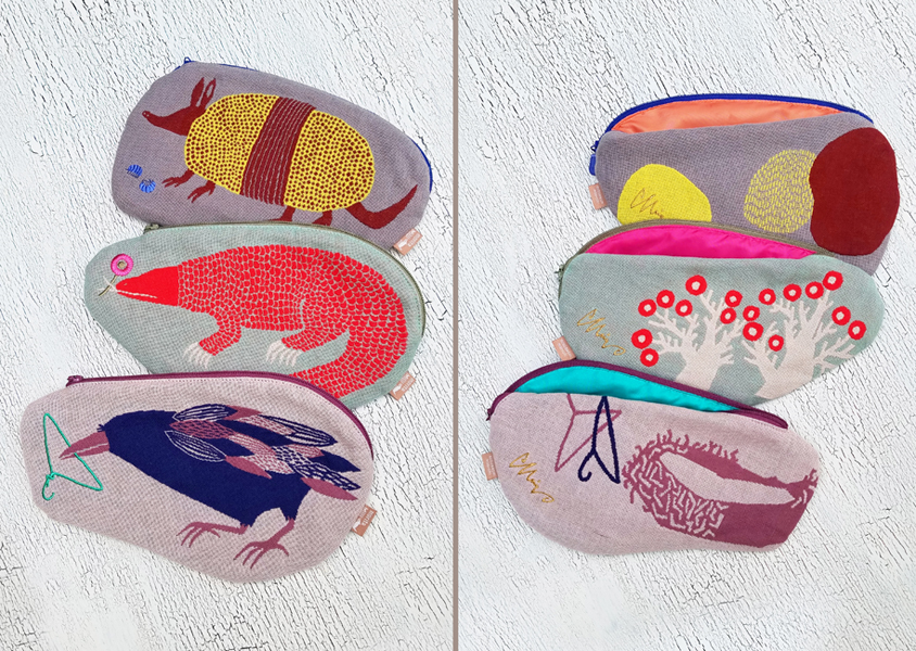 タオル・ハンカチ・ポーチ・ポストカード・原画・刺繍ブローチなどなど。